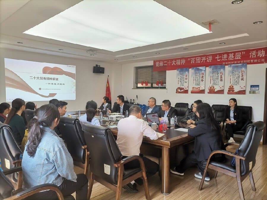 為深入學(xué)習(xí)貫徹黨的二十大精神,引導(dǎo)公司黨員干部全面、準(zhǔn)確、深刻領(lǐng)悟二十大精神。近日,中共株洲市委宣講團(tuán)成員湖南化工職業(yè)技術(shù)學(xué)院肖威副教授蒞臨我司作黨的二十大精神宣講,湖南創(chuàng)林新材管理人員、黨員及員工代表現(xiàn)場(chǎng)聆聽(tīng)了宣講。